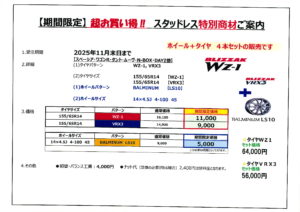 冬用タイヤへの履き替えをご検討されている方はお早目がおすすめです!